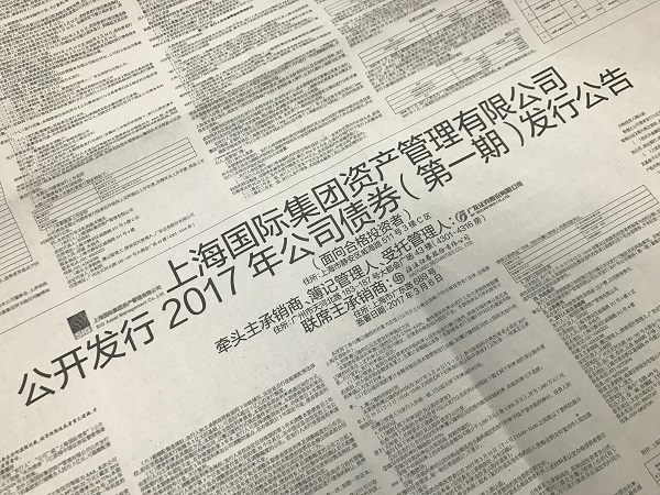 龙8集团资产管理有限公司2017年公司债券于3月13日成功公开发行,本次债券发行规模为3亿元,发行期限为5年期(3+2),融资成本为3.80%,打破2016年12月以来的市场同期限、同级别、同属性最低票面利率。树立了债务融资横跨双市场(证券交易所和银行间债券市场)的里程碑,亦充分体现了我公司在资本市场的成熟形象。