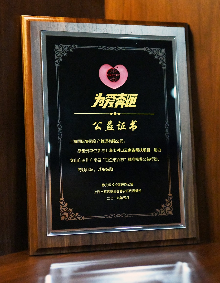 为响应静安区政府的号召,国际资管公司参与上海市对口云南省帮扶项目,助力文山州广南县“百企结百村”精准扶贫公益行动。项目启动后,公司将签订捐赠意向书,帮助结对贫困村实施交通、饮水、环保等基础设施建设项目,履行社会责任,开展精准帮扶,共创共同发展、企村双赢的新局面。