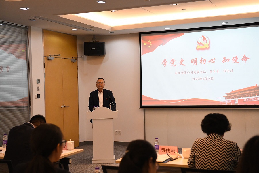 为贯彻习近平新时代中国特色社会主义思想,深入学习“党史、新中国史、改革开放史、社会主义发展史”,激励各级党组织和党员在深化公司改革创新发展中奋发有为、建功立业,6月30日下午,国际资管党委开展“奋进新时代,党员先锋行”七一主题党日活动。公司党政班子成员、集团党委管理干部、公司助理以上中层管理人员、本部各支部全体党员参加活动。