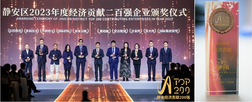2023年,尽管面临着全球经济不确定性加剧等诸多挑战和压力,静安区全年实现区级一般公共预算收入287.8亿元,同比增长3%,居中心城区首位。国际资管公司在静安区委、区政府的关心和支持下,稳健开展经营管理,积极践行社会责任,已多年获评静安区二百强获奖企业,为静安经济持续、健康、高质量发展,注入了强劲动力。